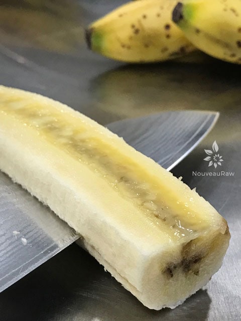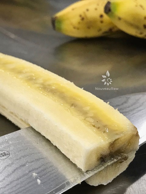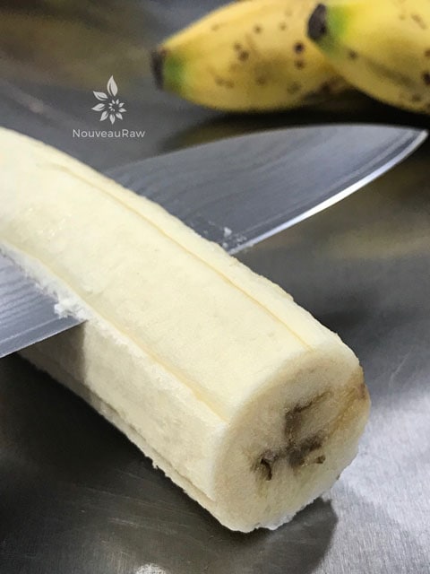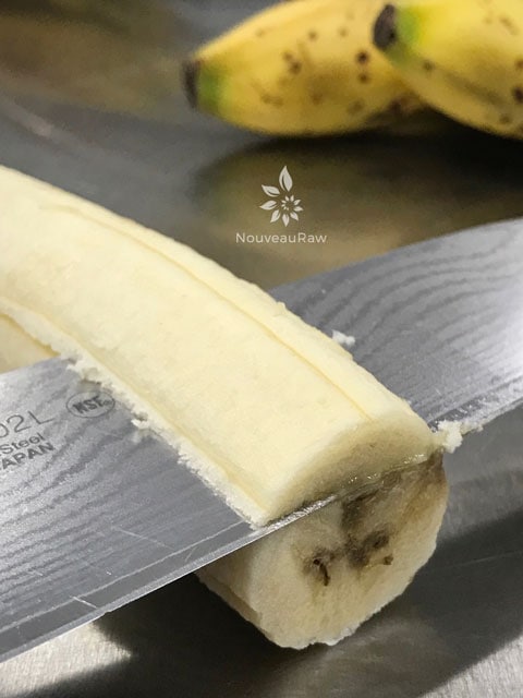 - Cut WITH the curve of the banana, not against it. See photos below.