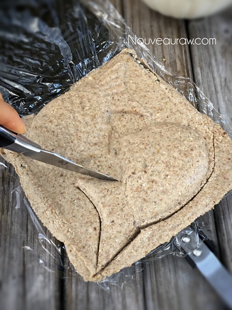 - Open the mold and remove the plastic wrap on one side. Trim away excess dough.