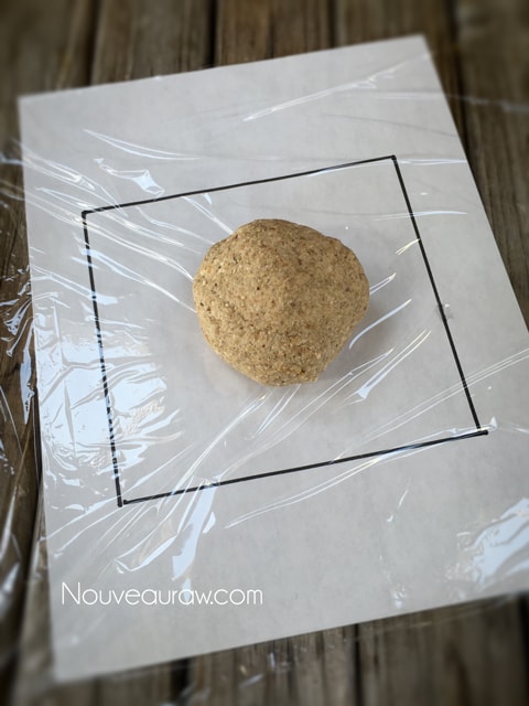 - Form a dough ball and put it in between two large sheets of plastic wrap. If it feels too sticky to handle, let it rest for at least 15 minutes.